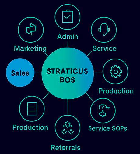 STRATICUS BOS™ replaces fragmented workflows with a unified Business Operating System (BOS)—a single, living system that compounds efficiency with every interaction. The result? Fewer delays, smarter decisions, and exponential gains in clarity, speed, and profitability.